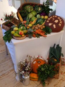 Typisch für Erntedank ist ein schön gestalteter Erntedanktisch oder -altar: