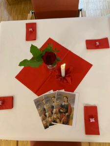 Am Dienstag den 19. November feierten wir den Elisabethentag. Wir haben um 15:00 Uhr mit einem Gottesdienst in unserer Hauskapelle begonnen. Pfarrvikar Mihai Vlad hat uns die Geschichte der Hl. Elisabeth vorgelesen, auch wurde das Lied „wenn das Brot dass wir teilen …“. im Gottesdienst gesungen. Anschließend haben wir uns bei Waffeln und Glühwein einige Musikstücke (Amazing Grace,…..) angehört. Diese wurden von Matthias Steinen auf dem Saxophon gespielt. Alle Zuhörer waren begeistert! Herzlichen Dank!