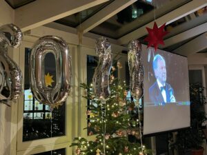 Am 31. Dezember feierten wir im Wintergarten/Speisesaal gemeinsam mit rund 40 Bewohnerinnen und Bewohnern eine fröhliche Silvesterfeier.