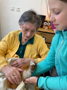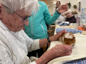 Gestern hatten wir tierischen Besuch. Lena mit ihren Freundinnen brachten das Meerschweinchen „Krönchen“ mit. Das Tier wurde von den Bewohnerinnen und Bewohnern mit großer Freude aufgenommen und führte zu zahlreichen Gesprächen, in denen einige Anwesende an frühere eigene Haustiere erinnerten.
