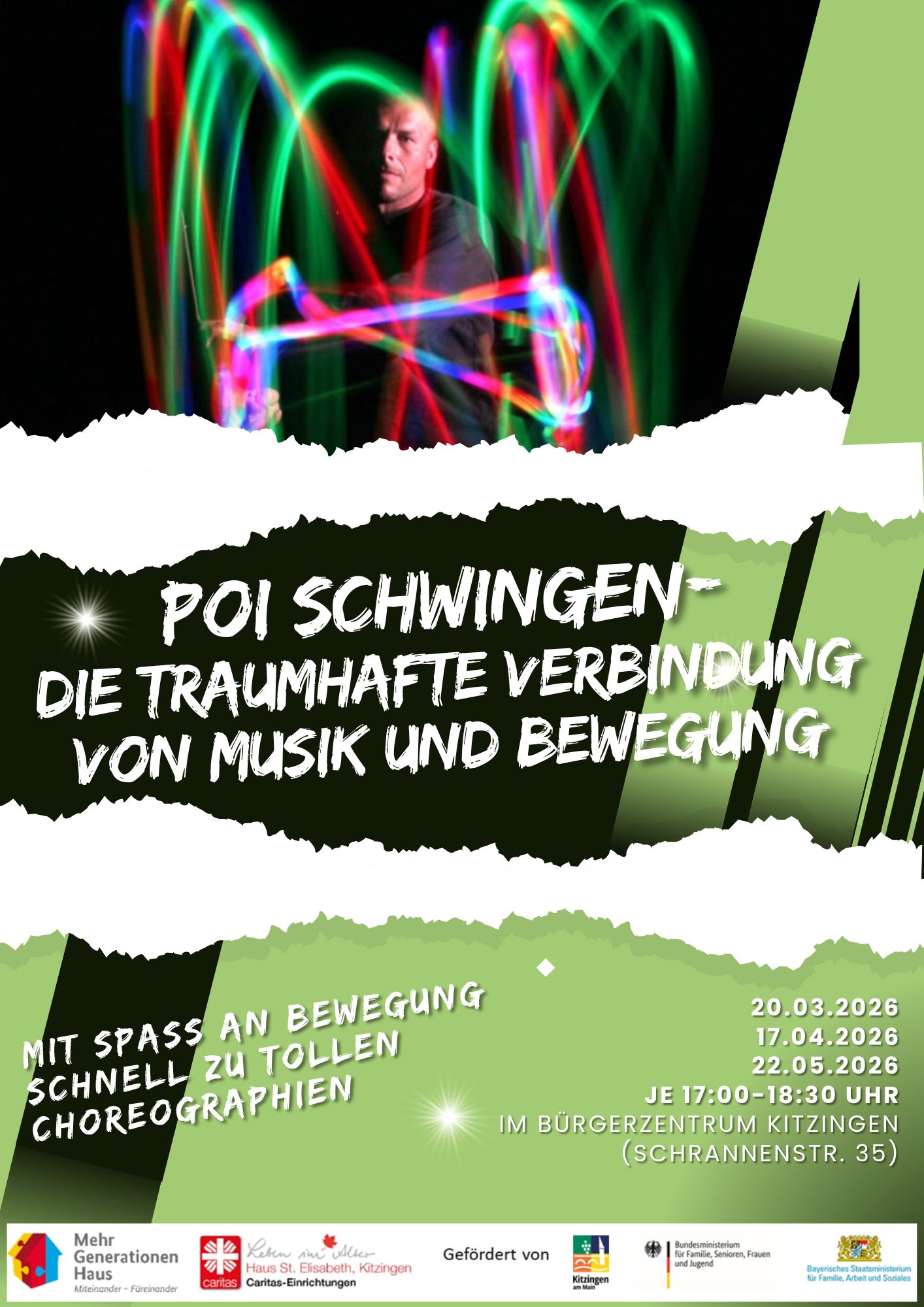 Poi Schwingen - die traumhafte Verbindung von Musik und Bewegung Kooperationsprojekt mit Klaus Scheuermann im Bürgerzentrum Kitzingen (Schrannenstr. 35). Mit Hilfe des Konzeptes Bewegung-Name-Notation und des zugehörigen Stufenmodells von Klaus […]